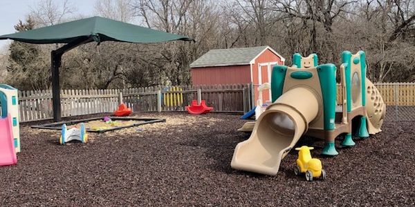 Stepping Stones has two playgrounds. The first is for our older infant and toddler aged children. The play ground equipment is closer to the ground and easily accessible for smaller hands and bodies.
